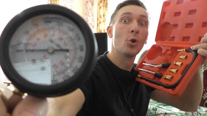 Компрессометр для бензинового двигателя в красной коробке