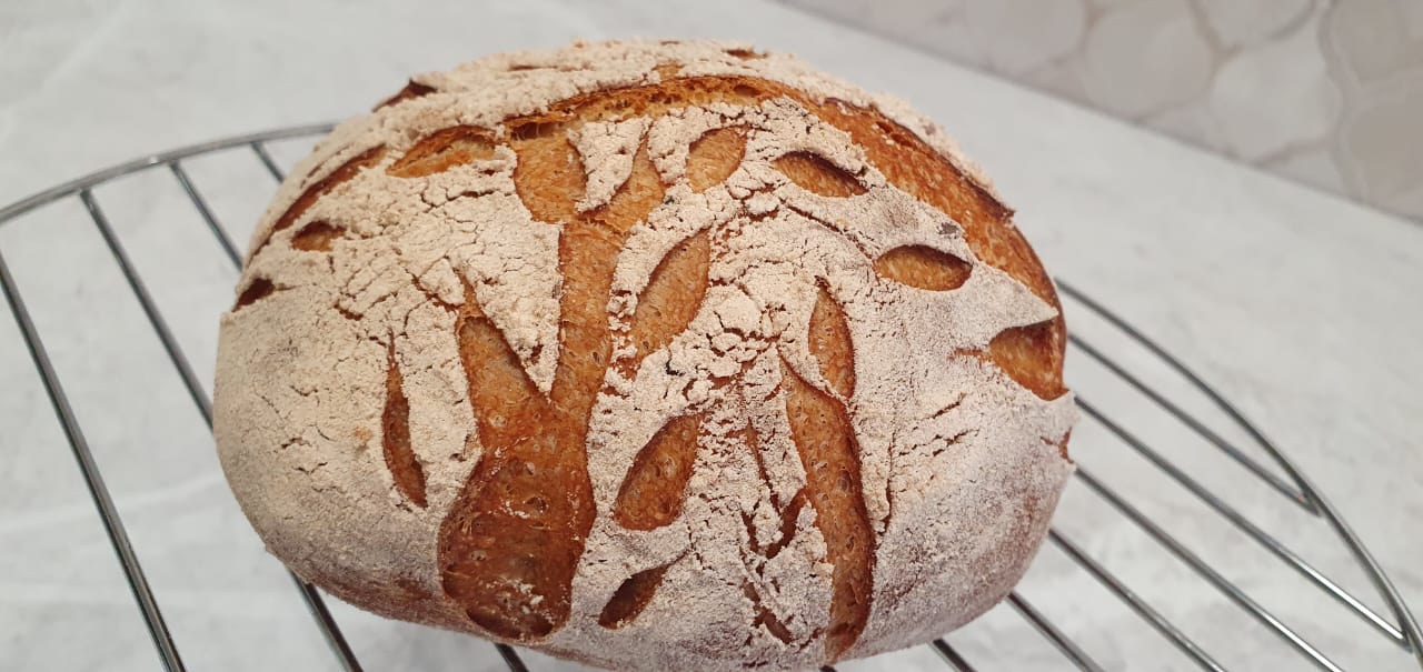 Проще всего приготовить домашний хлеб, запекая его в чугунной кастрюле с крышкой. Кастрюлю необходимо нагревать в духовке в течении 30 мин, переложить в раскаленную кастрюлю хлеб и выпекать в разогретой до 250 градусов духовке 20 минут под крышкой, через 20 минут снять крышку убавить температуру до 190°C, запекать хлебушек ещё 20 минут, чтобы образовалась аппетитная корочка. Ингредиенты: 350 мл воды комнатной температуры сухих дрожжей 0,5 ч.л. ( у меня проверенные ) мёд 1 ч.л. ( не обязательно) соль крупная 12 г. ( 1 ч.л. с большой горкой) патока ржаная 1 стол. ложка мука в/с 450 г. мука цельнозерновая сорт обойная 70 г. мука ржаная 30 г.