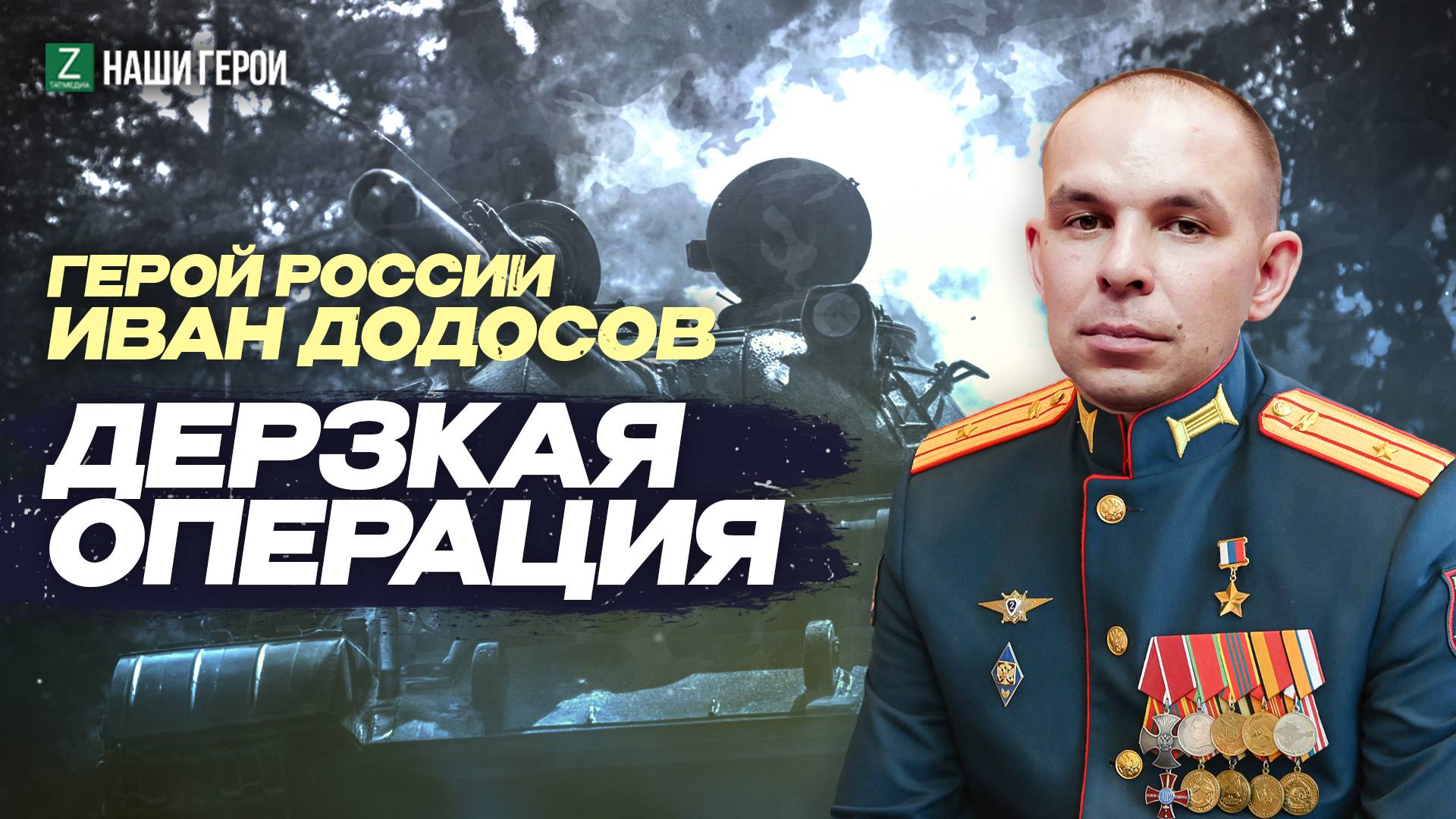 2 мая 2022 года командир танкового батальона Иван Додосов из Татарстана проявил невероятное мужество, захватив укрепрайон ВСУ в неравном бою. В ходе этой операции его экипаж уничтожил восемь танков противника, а экипажи двух оставшихся сдались в плен. Эта победа стала поворотным моментом в боях за Попасную. Иван Додосов прошел путь от командира взвода до командира танкового батальона 8-й гвардейской общевойсковой армии Южного военного округа в городе Новочеркасске Ростовской области. В 2014 году участвовал в присоединении Крыма, за что получил медаль «За отличную стрельбу», медаль Суворова и награду «За возвращение Крыма». Участвует в спецоперации с самого начала и продолжает служить там до сих пор. Родился Иван 7 сентября 1989 года в Пестречинском районе Татарстана. После окончания школы он решил поступить в Казанское танковое училище, где быстро зарекомендовал себя как один из лучших и наиболее уважаемых выпускников. В период СВО звания «Героя России» были удостоены 17 татарстанцев. Подвиг каждого из них воссоздан с помощью нейросетей. Ролики о Героях России выходят в социальных сетях «Татмедиа» каждую среду и пятницу. *Для создания данного видео были использованы нейросети. Сгенерированное видео – это художественное творчество. При использовании нейросетевых технологий возможны неточности в изображении лиц, техники, оружия, географических объектов. #ГероиТатарстана #БезнеңГеройлар