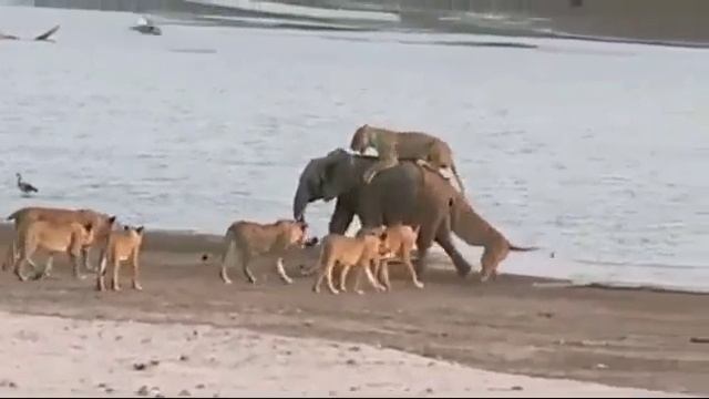 Слоненок против прайда львов