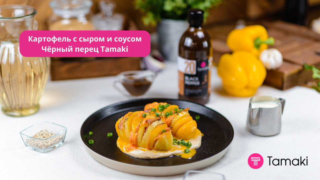 Картофель с сыром на подушке из сливок с соусом Черный Перец