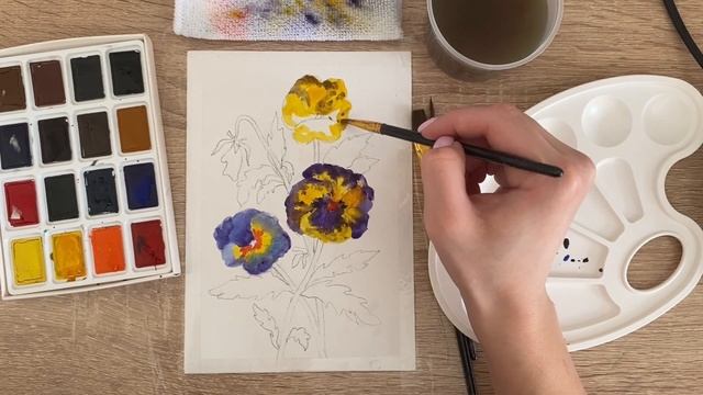 Как нарисовать анютины глазки карандашом и акварелью начинающим | Рисунок для детей
