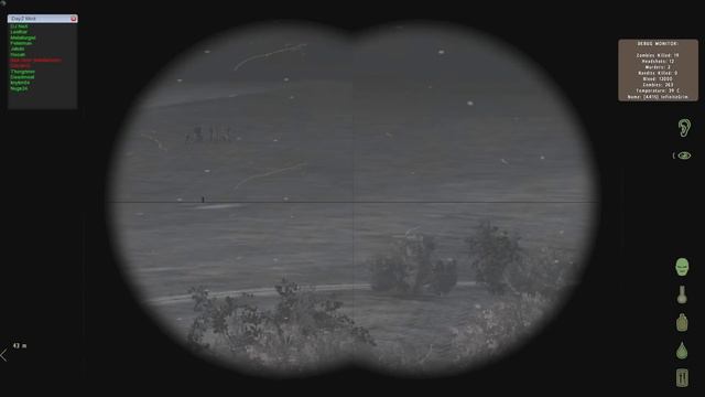 Someone decided to lead 10+ zombies towards friends changing backpacks and they were not ammused. We got them to log and all the zombies stood around in a nice group, perfect for a frag. My clan [AR15] has 20+ members, most of us play seriously as we do not want to die every few minutes, as dying in this game resets everything. DayZ is a free mod for Arma II Combined Operations. You only need to buy Arma II Operation Arrowhead to actuall play. This mod was created by "Rocket" who is a member of the ARMA dev team. "This video is created using games from Bohemia Interactive. See www.bistudio.com for more information."