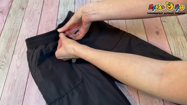 330053 Брюки Lanson Kids однотонные непромокаемые с манжетами и шнурком на поясе черные