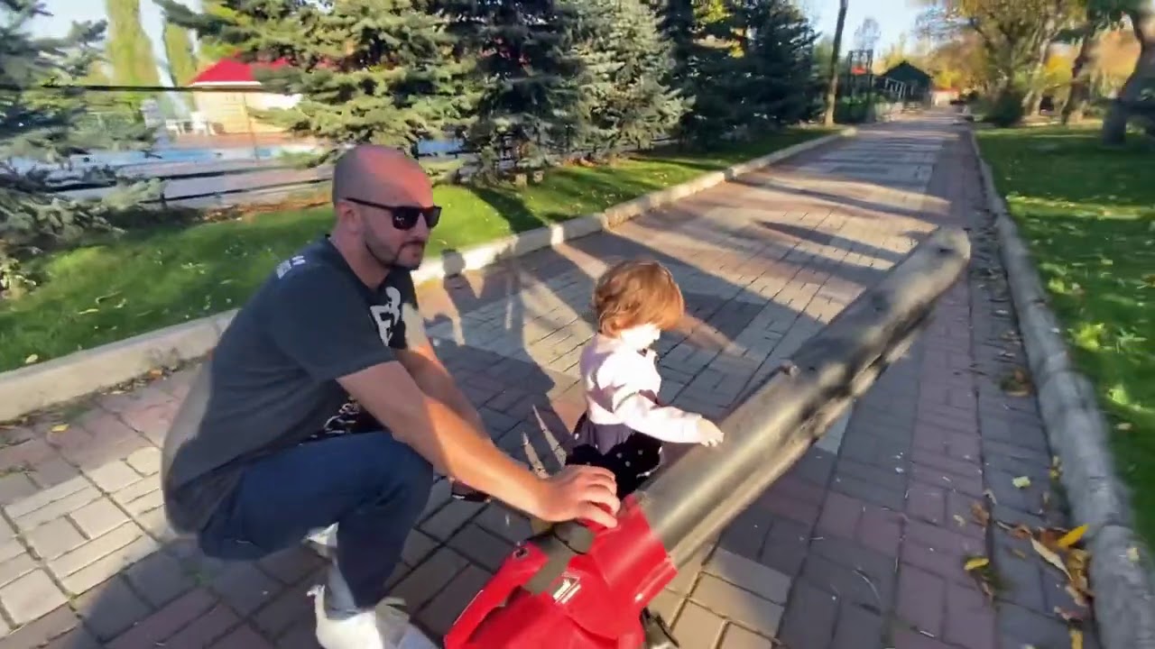 Ангелина учится убирать листья с аллей парка !