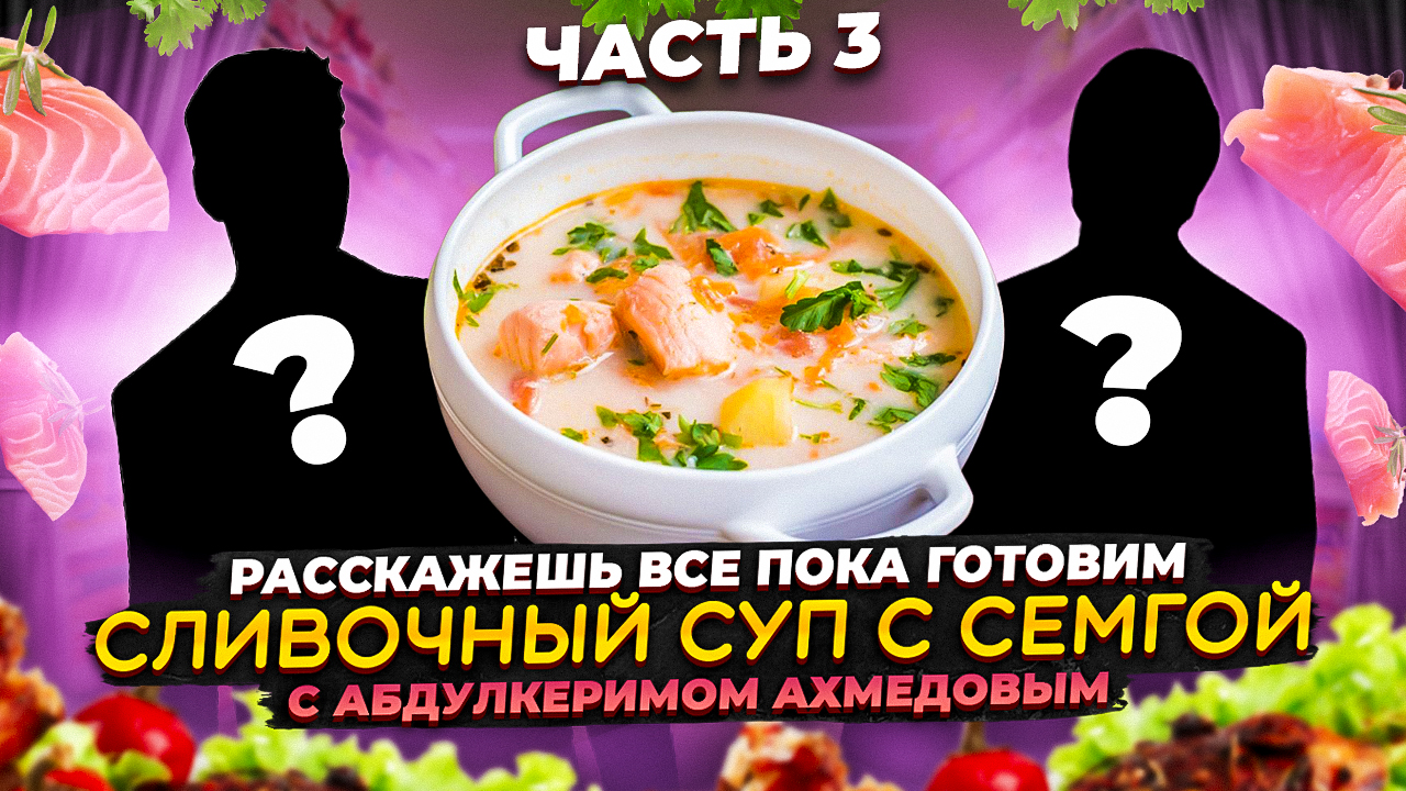 пока мы с Аишей готовим сливочный суп с семгой. Я попытаюсь узнать секреты Аиши и раскрыть ее. Задам вопросы волнующие аудиторию.