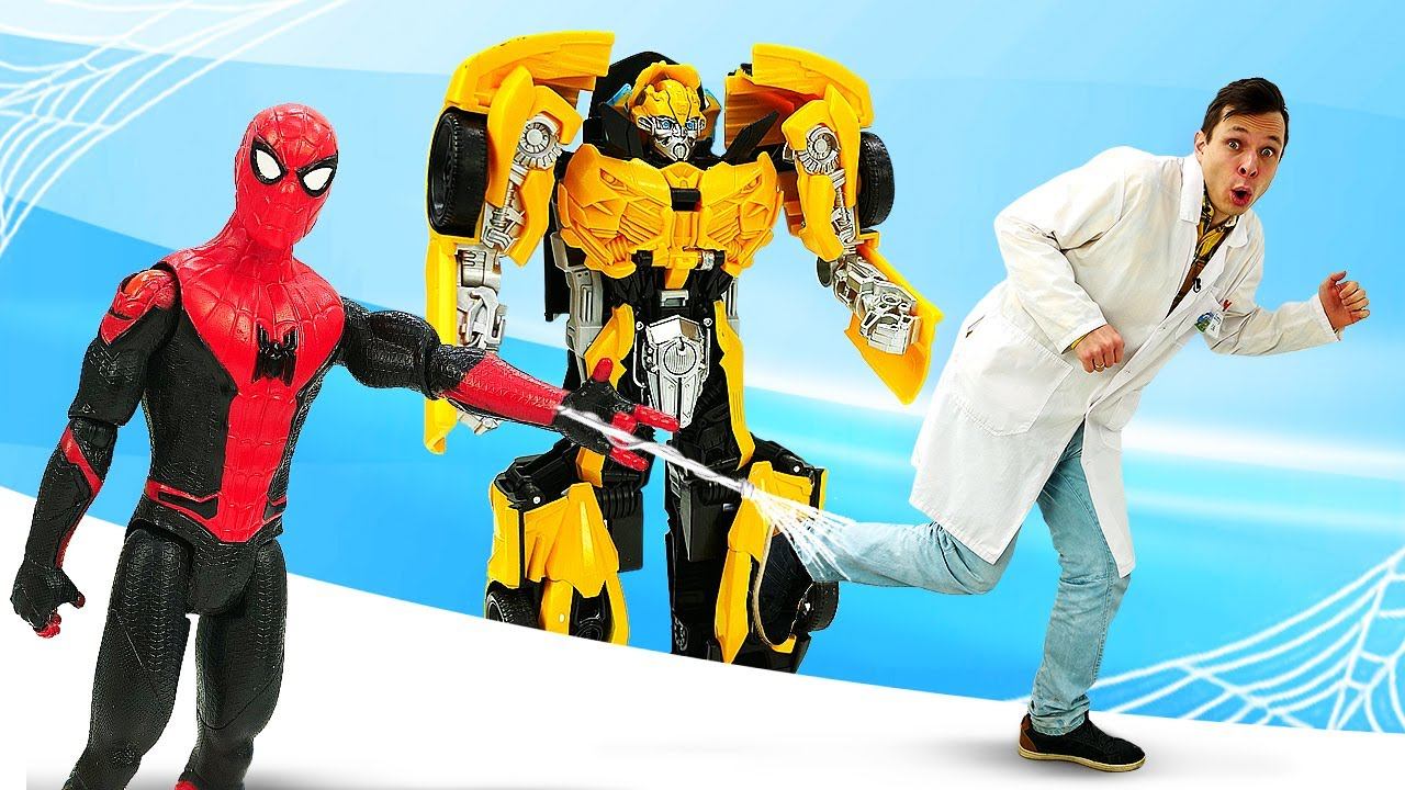 Человек Паук без паутины! Бамблби и Монкарт в Мегаклинике! Видео про игрушки и игры в больницу!