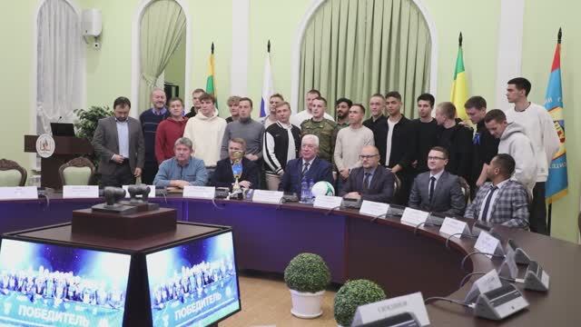 Ректор ПГУ поздравил сборную университета по футболу с победой в юбилейном десятом Общероссийском дивизионе Национальной студенческой футбольной лиги.