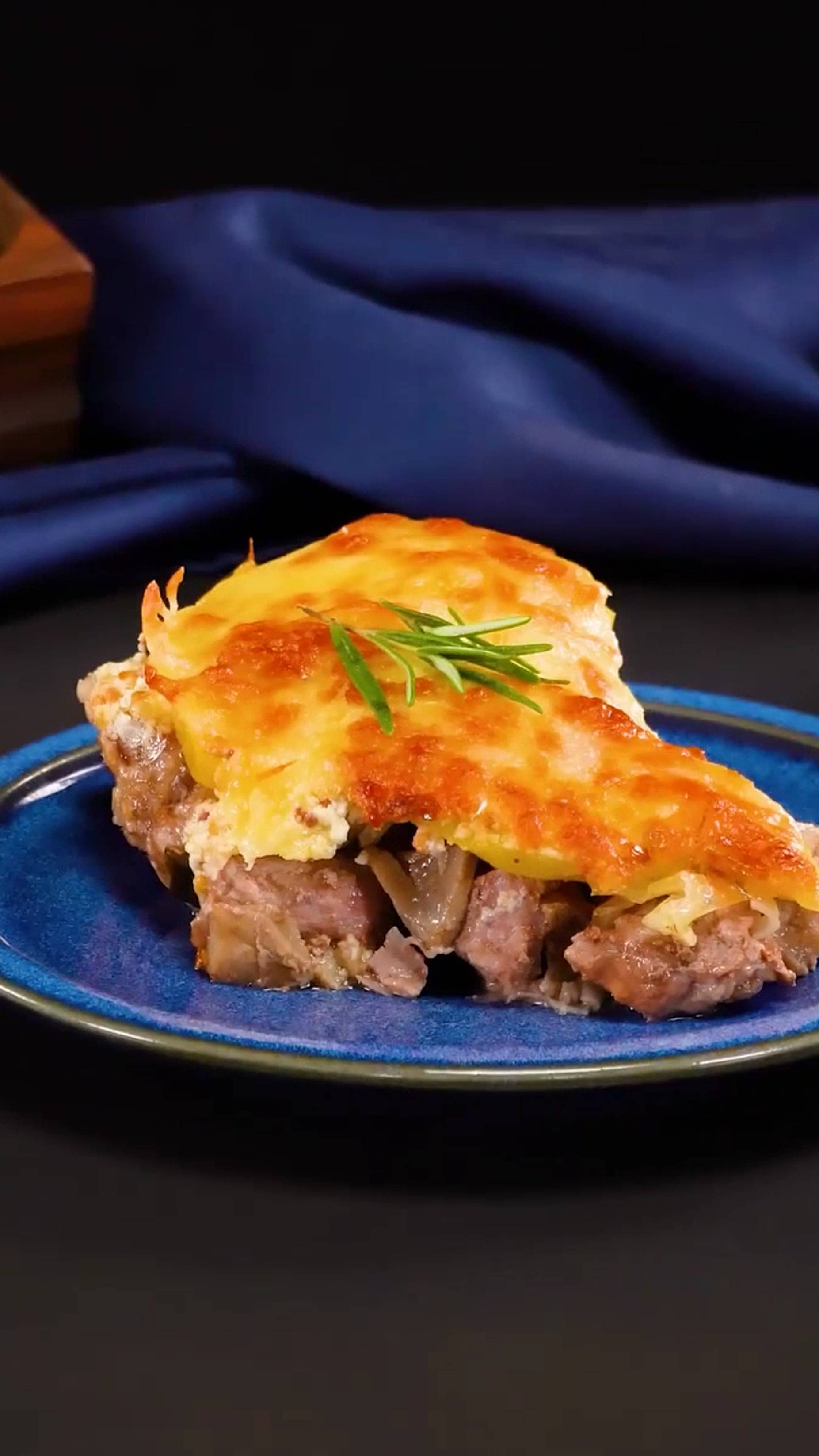 Один секрет и мясо растает во рту как масло! Ингредиенты: свиная шейка: 1 кг грибы, шампиньоны : 300 г лук: 1 шт лук-порей : 1 шт черный перец: 5 г соль: 5 г растительное масло: 30 мл картофель : 3 шт йогурт : 150 г семена горчицы: 50 г пармезан: 50 г растопленное сливочное масло : 100 г моцарелла : 150 г