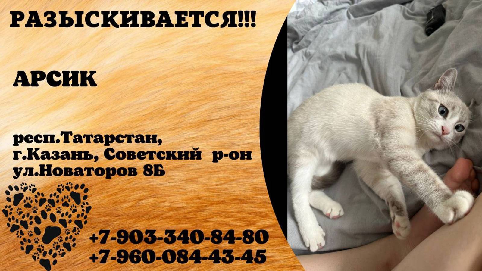 Пропал кот! АРСИК. респ.Татарстан, г.Казань.