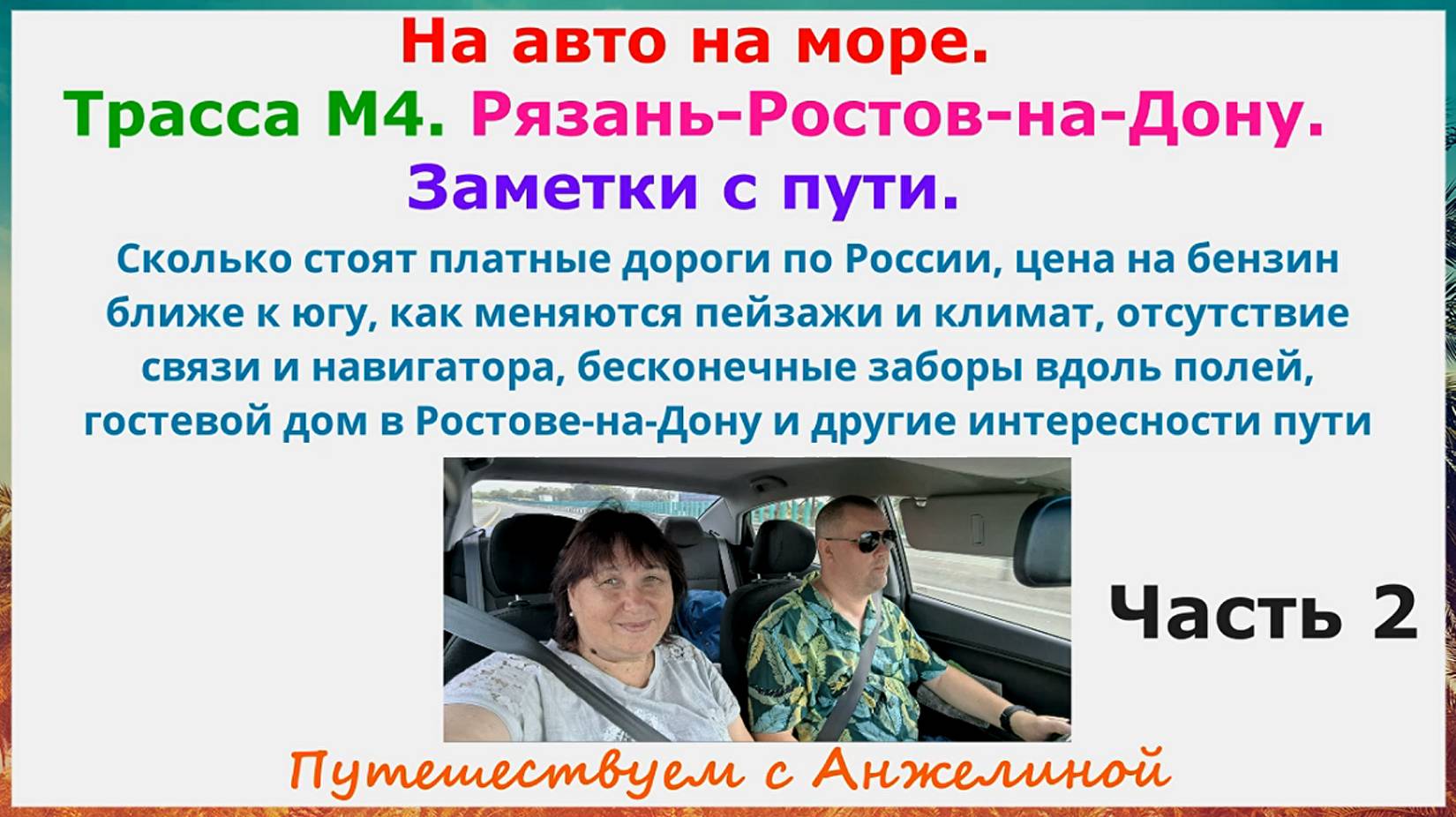 Продолжаю рассказ о нашем путешествии на авто по стране к морю из Рязани в Крым. Наши путевые заметки. Первая часть тут https://youtu.be/o1tv-vQjub4?si=cOOIgvdyvGcaKdYX и тут https://rutube.ru/video/734b538fe1c677952014992f36b8ee79/?r=wd и даже тут https://dzen.ru/video/watch/66f13bbe9f915f06ccc33da4?share_to=link а так же в ВК https://vk.com/wall-226856756_47 Сколько стоят платные дороги в России, цена на бензин ближе к югу, как меняются пейзажи по пути и климат, отсутствие связи и навигатора, бесконечные заборы вдоль полей, гостевой дом в Ростове-на-Дону и другие интересности пути. Спасибо, что путешествуете со мной! Для всех тех, кто любит со мною путешествовать, шить, готовить, играть в куклы, напоминаю ссылки на мои каналы и сообщества: Канал рутуб https://rutube.ru/channel/26492427/ Дзен https://dzen.ru/id/622e9c73f53aef1fff486dbf Все видео ВКонтакте https://vk.com/club226856756 Основной ютуб https://www.youtube.com/@anzhelina_magadan_ryazan/vid.. Ютуб Шьем с Анжелиной Джоли https://www.youtube.com/@anzhelina_jolie_ Моя творческая мастерская в ВК https://vk.com/public212000538 Играю в куклы в ВК https://vk.com/club224828421 Готовим с Джоли в ВК https://vk.com/club223193761 Телеграмм для общения Анжелина&Компания https://t.me/TDZvbN1Kd0zOTg6 Телеграмм новостной со ссылками на все публикации https://t.me/anzhelina_osim_chaim Телеграмм Шьем с Анжелиной Джоли https://t.me/sewing_jolie Телеграмм МИР КУКОЛ https://t.me/Qnpa6Jmld4yh_y8d Телеграмм Мода/стиль/идеи/шитье https://t.me/moda_style_idei_sewing Мои публикации на бейбиках про кукольное хобби https://babiki.ru/profile/zakharchuk/created/topics/page2/ Кому нравятся мои путешествия и видео-прогулки по разным городам, моя незатейливая кулинария, мое шитье и куклы, мой жизненный настрой и позитив, которым я делюсь с другими - большое вам спасибо за это! И если вам хочется поддержать мои каналы в период отсутствия монетизации - карта Сбербанк: 4817 7603 5888 6061 - буду очень признательна - я на них куплю новую видео камеру 360, новую камеру гоу про, харды для хранения наснятого материала, и новую куколку и билеты в новые путешествия!!!!!! Спасибо за любую поддержку! С уважением, Анжелина