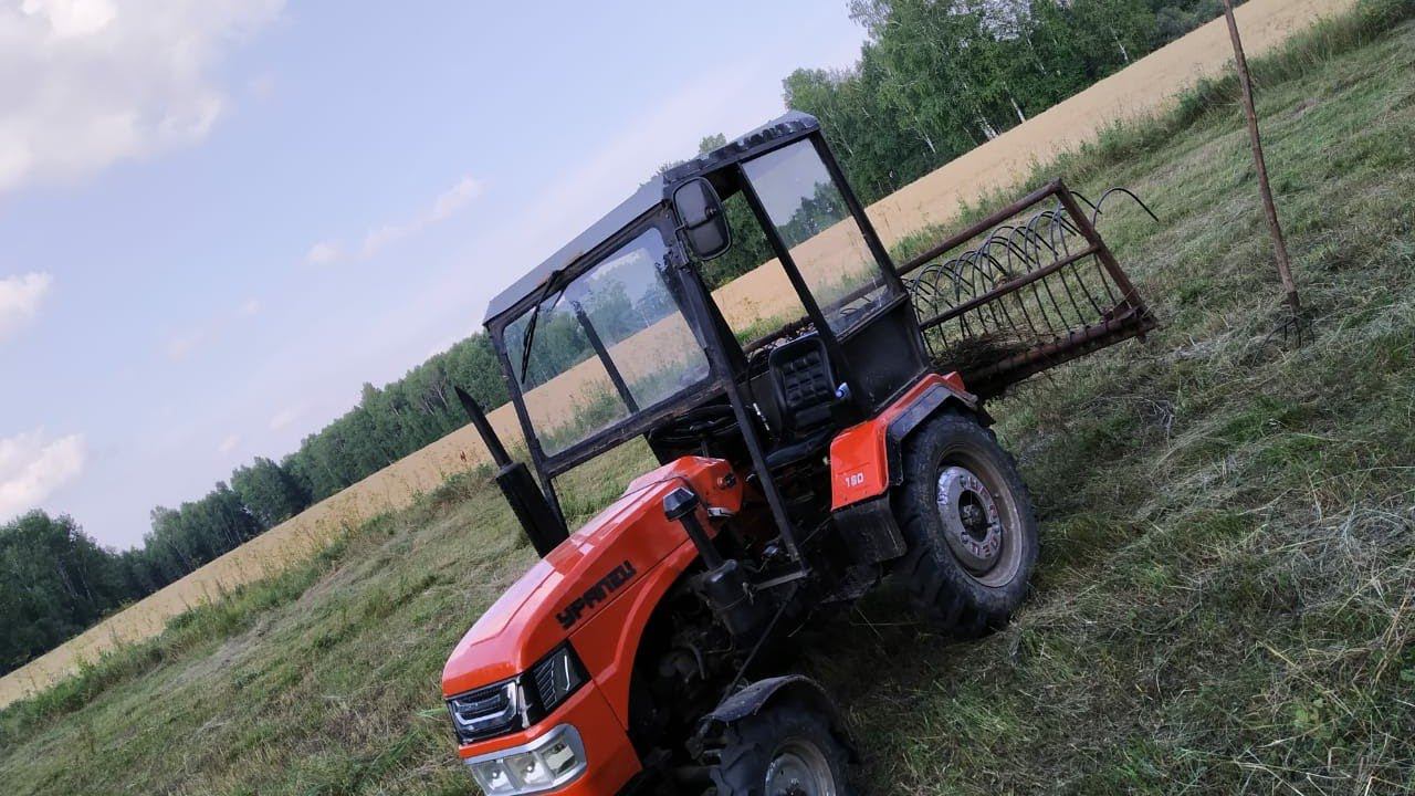 Гребем сено минитрактор Уралец 180
