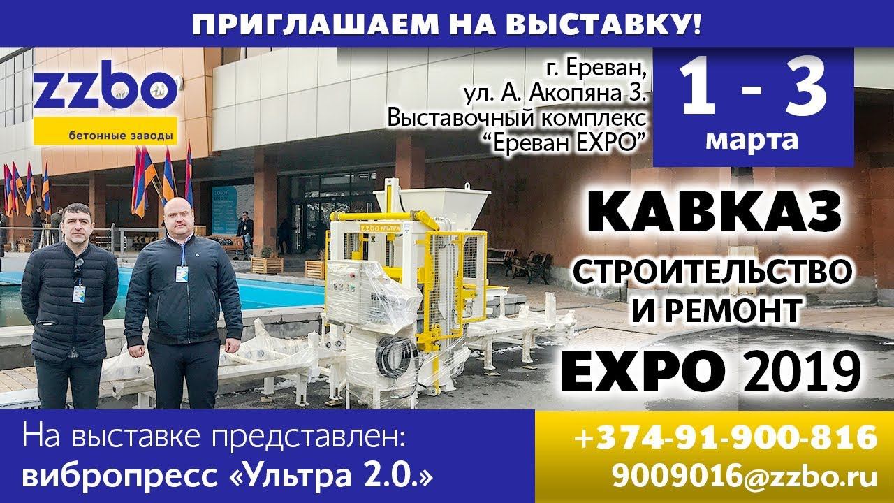 Открытие выставки КАВКАЗ: СТРОИТЕЛЬСТВО И РЕМОНТ EXPO 2019 в Армении! Началась весна — началась и международная специализированная выставка КАВКАЗ: СТРОИТЕЛЬСТВО И РЕМОНТ EXPO 2019 в Армении! Выставка продлиться 1-3 марта 2019 года, и будет проходить в выставочном комплексе “Ереван EXPO” по адресу: г. Ереван, ул. А. Акопяна 3. ZZBO является постоянным участником данной выставки и мы привезли вибропресс «Ультра 2.0.»! И не в одном экземпляре! Кстати, одна «Ультра» уже продана и останется в Армении!