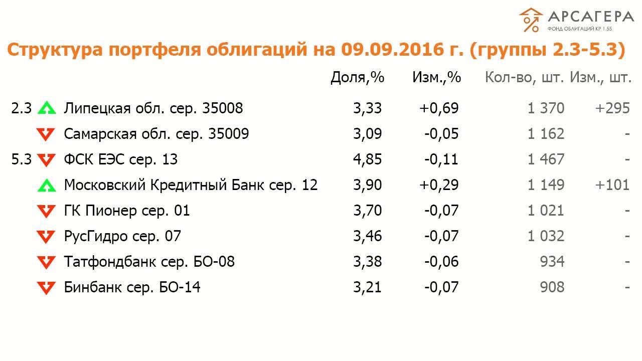ОПИФО «Арсагера - фонд облигаций КР 1.55» с 12.08.16 по 26.08.16
