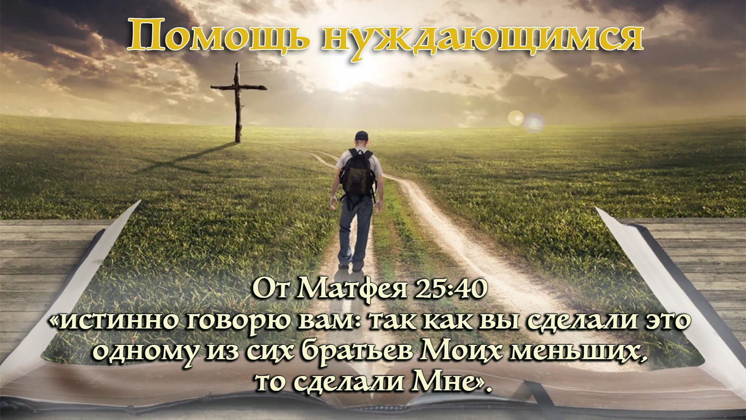 От Матфея 25:40 "Истинно говорю вам: так как вы сделали это одному из сих братьев Моих меньших, то сделали Мне".