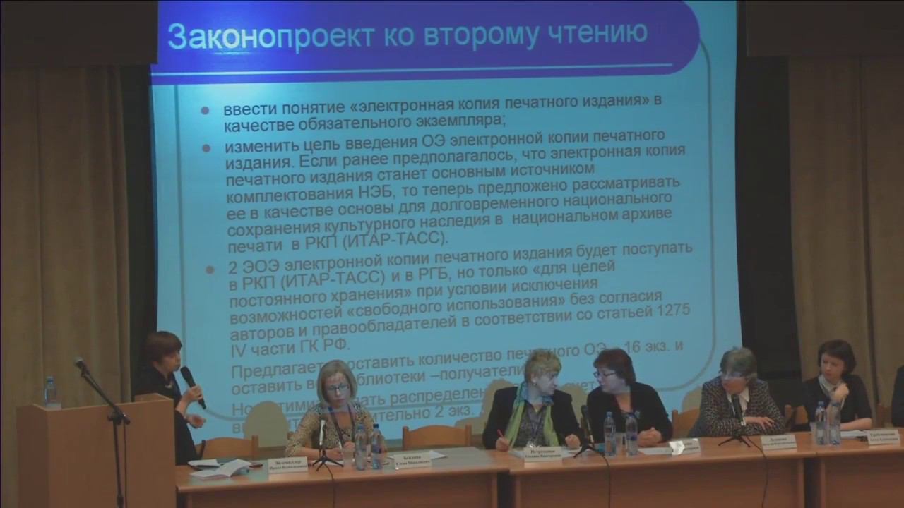 Пленарная дискуссия «Реформирование законодательства об обязательном экземпляре в России». 2016, 1д