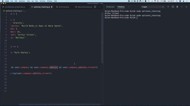 This tutorial covers 5 advanced techniques for working with javascript objects: 1. conditional object properties 2. optional chaining 3. object shorthand 4. object deconstruction 5. finding an object in an array of objects NOTES Download the code from the tutorial on Github ? https://github.com/usegravity/tutorials QUESTIONS Have a question about working with Javascript objects? Or a suggestion for a future video? Please a comment below and I’ll get back to you. CONNECT Follow me on Twitter ? https://twitter.com/kylegawley Find out more about Gravity ? https://usegravity.app SUBSCRIBE Get notified of new video tutorials ? https://www.youtube.com/channel/UC5B1mJn-FRs7hKZOsQtedbA