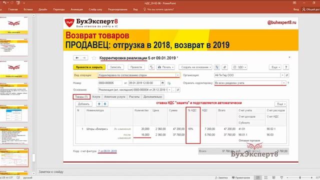 Возврат товаров 2019 (Бухучет в 1С видеоуроки)