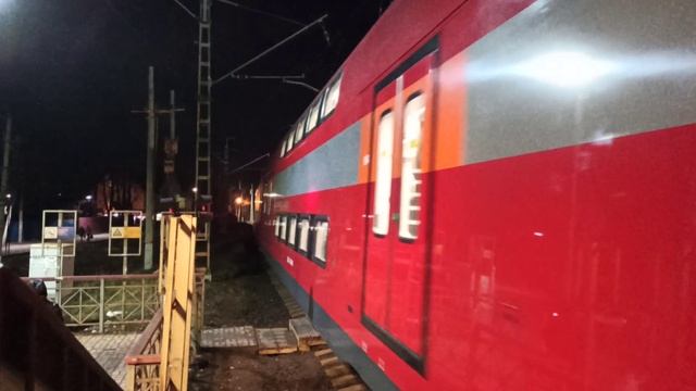 Красочное ночное прибытие новейшей электрички ЭГ2Тв "Иволга 2.0" на станцию D1 МЦД Водники