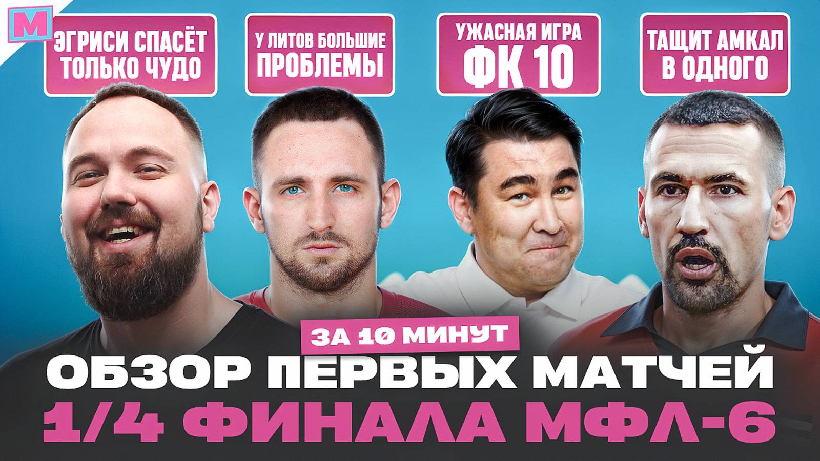 Краткий обзор первых матчей стадии 1/4 финала МФЛ-6: Лотус снова засушил игру, но как с 2Д пока не получилось, травмы Литов, странная игра ФК 10, всё это внутри нашего обзора. Телеграм-канал Медийка: https://t.me/+HfbJ_nglIAAxNWMy Телеграм-канал «Срочный спорт»: https://t.me/srochnosport VK «Sport24.ru» https://vk.com/sport24_ru 00:00 - Всем привет! 00:17 - BrokeBoys - Эгриси 01:17 - СиндЕкат - Lit Energy 03:14 - ФК 10 - Тандем 07:09 - Амкал - Lotus