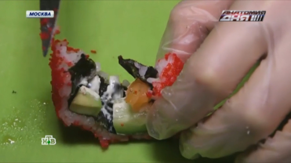 Русская рулетка: как не стать жертвой опасных роллов и суши? Из чего на самом деле готовят японские блюда в России? Репортер «Анатомии дня» узнал все грязные секреты этой кухни. Экспертизу роллов и суши провёл эксперт независимой экологической лаборатории ТЕСТЭКО - Александр Кукса
