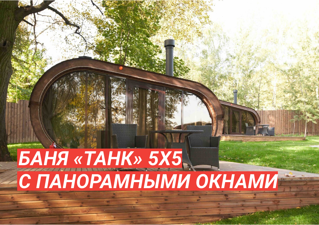 Баня «Танк» 5х5 с панорамными окнами: компактно и безумно комфортно