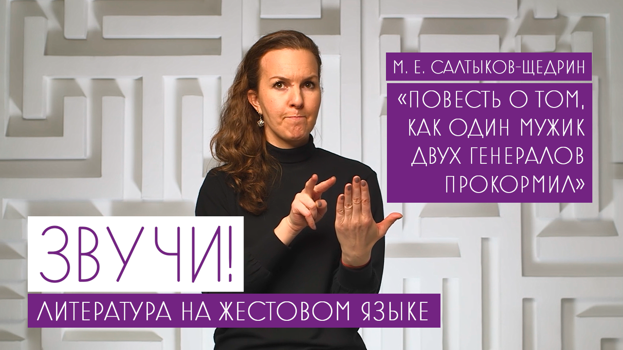 Проект "Звучи!" Литература на жестовом языке "Повесть о том, как один мужик двух генералов прокормил, М. Е. Салтыков-Щедрин". "Звучи!" – образовательный проект дистанционного обучения, в котором русская литература переведена на язык жестов профессиональными глухими и слабослышащими актерами. Язык жестов считается официальным вторым языком для людей с проблемами слуха, однако в школах для глухих и слабослышащих литературу преподают исключительно в формате чтения с листа – на уроках дети не читают по памяти стихотворения и не цитируют прозу на том языке, на котором они привыкли думать и общаться между собой – на языке жестов. Но читать стихотворение и позволить ему "прозвучать" на языке жестов – совершенно разные по эмоциональному накалу – переживания. Проект призван помочь дошкольникам, учащимся и взрослым – усвоить школьную программу по литературе по-новому.