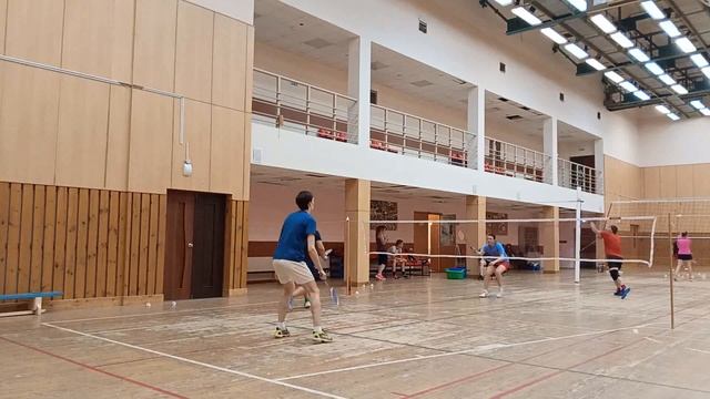 Тренировочная игра в бадминтон через сетку. Играют любители, новички и опытные бадминтонисты. Игра в Лестехе (МГУЛ ранее, сейчас называется филиалом Бауманки). Хочешь тоже играть? Приходи - https://badminton77.ru/map/4/ #badminton #badmintonlovers #badmintonrussia #lesteh #ЛесТех #бадминтон
