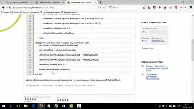 Макросы в QlikView Изменение цвета ярлыка с помощью VB макроса