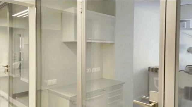 Распашные каркасные стеклянные двери и раздвижные цельностеклянные двери для стоматологии