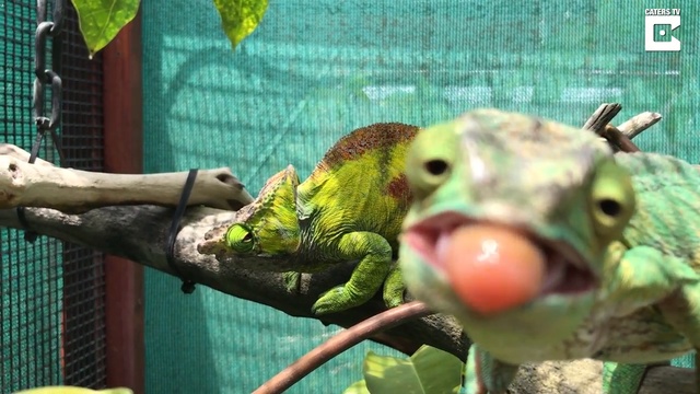 Самка хамелеона кривляется на камеру