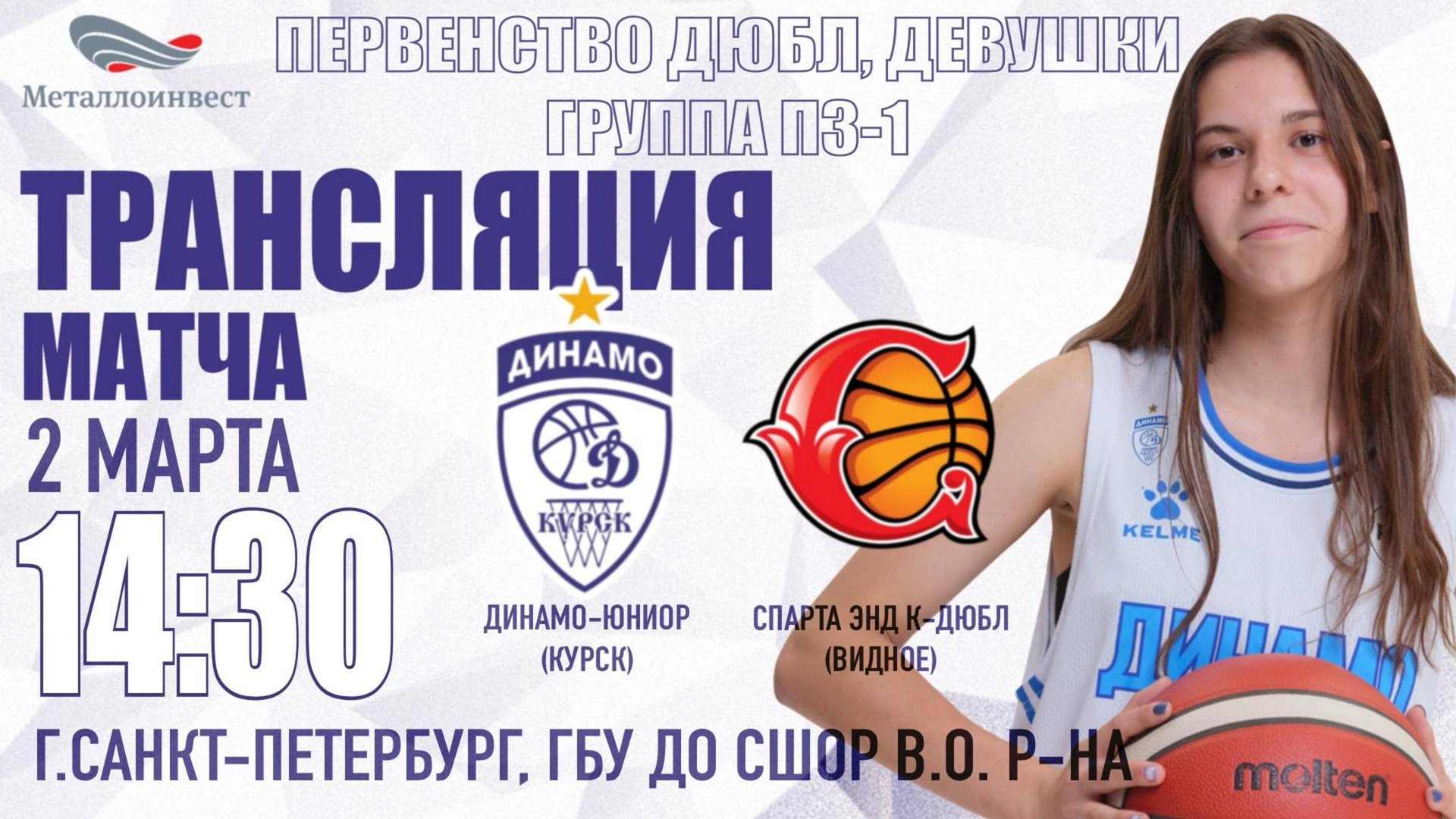 02.03.2025 14:30 Динамо-Юниор (Курск) - Спарта энд К-ДЮБЛ (МО, Видное) Девушки, Группа П3-1 | Санкт-Петербург | 02-07.03.2025 Арена: Санкт-Петербург, ГБУ ДО СШОР В.О. района Статистика: https://russiabasket.ru/games/885014?apiUrl=https://org.infobasket.su&lang=ru