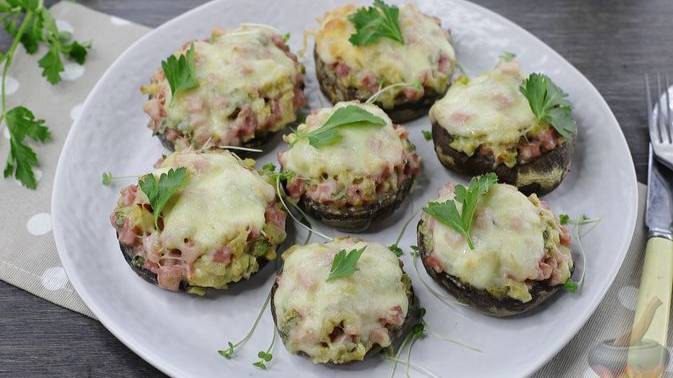 Вкусные шляпки.) ФАРШИРОВАННЫЕ ШАМПИНЬОНЫ С ВЕТЧИНОЙ