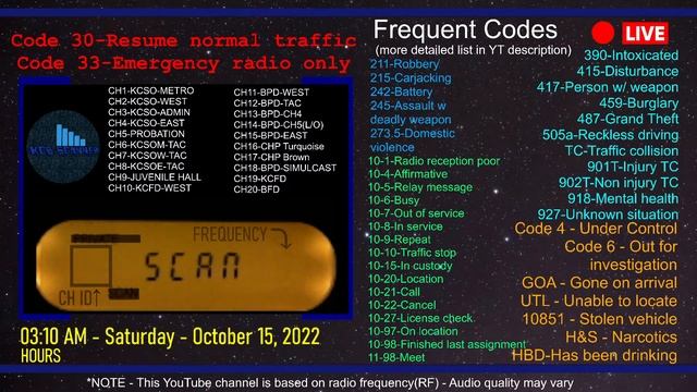 Companion stream for watching local stringers and/or PulsePoint 12 hour rewind for re-viewing purposes Frequency List - https://tinyurl.com/KCBfreq Police Codes PDF - https://tinyurl.com/KCBcodes Scanner Model - Bearcat 350C https://tinyurl.com/KCB350 Antenna - HG Scanner https://tinyurl.com/KCBHGantenna Budget Scanner - Baofeng UV5R https://tinyurl.com/KCBUV5 Budget Antenna - https://tinyurl.com/ABBREE771