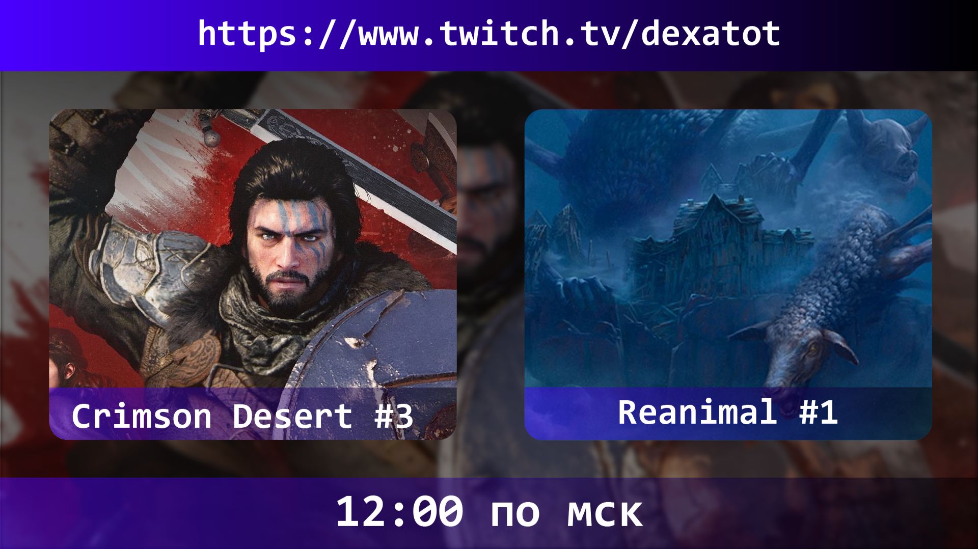 🎮 CRIMSON DESERT + REANIMAL. Приятного просмотра! Telegram: https://t.me/Dexatot Два мира, два настроения. ⚔️ Crimson Desert — открытый мир, жестокие сражения и эпичные приключения. Ты — наёмник, закалённый в боях, вынужденный выживать в землях, раздираемых войной и интригами. Охота на монстров, осады крепостей, исследование огромного мира и выбор собственного пути. 👻 REANIMAL — хоррор от создателей Little Nightmares. Мрачная сказка, где каждый шаг может стать последним. Ты — один из детей, запертых в странном, искажённом мире. Исследуй, прячься, беги и пытайся выжить в кошмаре, который не хочет тебя отпускать. Подписывайся на канал: https://www.youtube.com/@Dexatot Twitch: https://www.twitch.tv/dexatot Rutube: https://rutube.ru/channel/30631308 Telegram: https://t.me/Dexatot Поддержи развитие канала: Boosty: https://boosty.to/dexatot Начни просмотр здесь: https://studio.youtube.com/playlist/PLbyIMmYcM7rq96NDiFR4rp5VFfCTMJfwS/edit ФИД (Фестиваль игровых демо): https://studio.youtube.com/playlist/PLbyIMmYcM7rowQwd31LVmb5p0bmDmubK-/edit #CrimsonDesert #REANIMAL #dexatot #letsplaydexatot #прохождения
