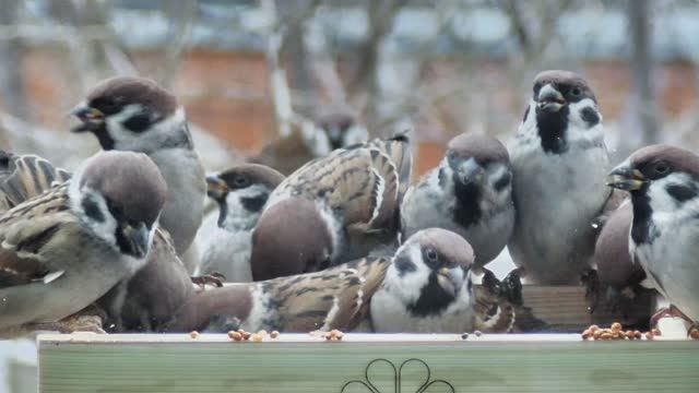 Полевые воробьи в кормушке