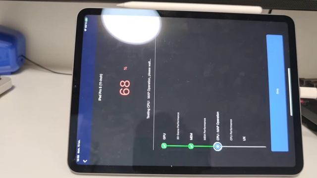 Test Antutu Benchmark iPad Pro 2021 în română Scorul a fost de: 1038550 după repornirea tabletei CPU: 255652 GPU: 504544 MEM: 172481 UX: 105873