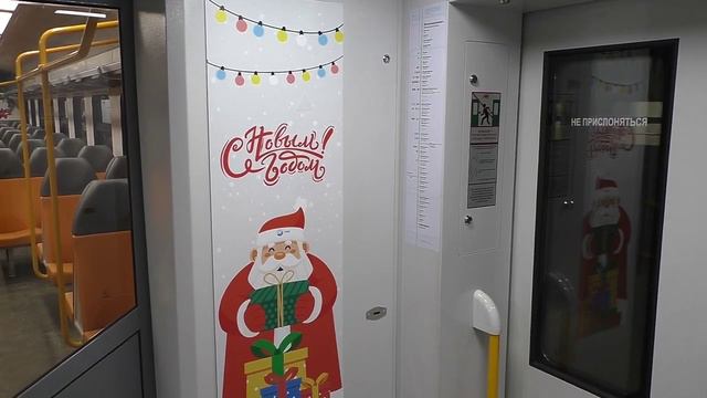 Салон и тамбур электропоезда ЭП2ДМ-0217 украсили к Новому году.