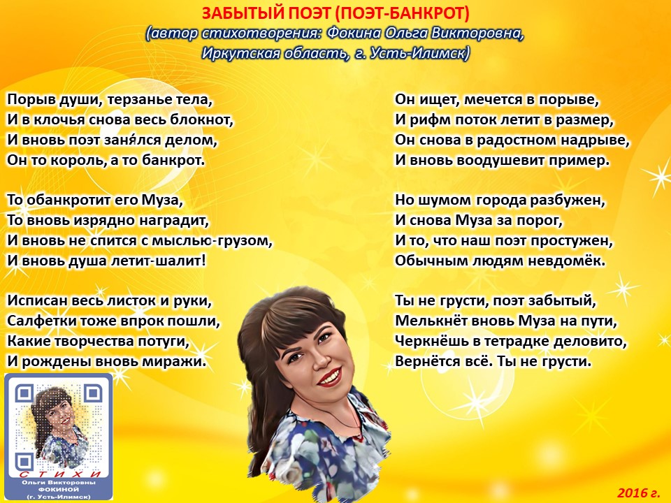 Ольга Фокина (Усть-Илимск) - ЗАБЫТЫЙ ПОЭТ (ПОЭТ-БАНКРОТ)