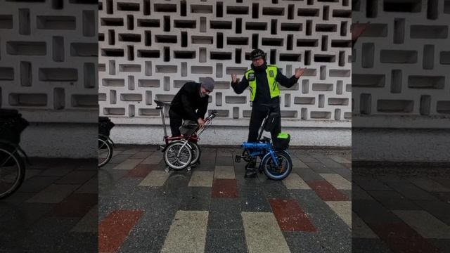 Скорость сложения Бромптона и Шульца Хоппер. Хоппер "модернизирован" двойной подножкой и магнитом, позволяющим фиксировать колёса при сложении велосипеда