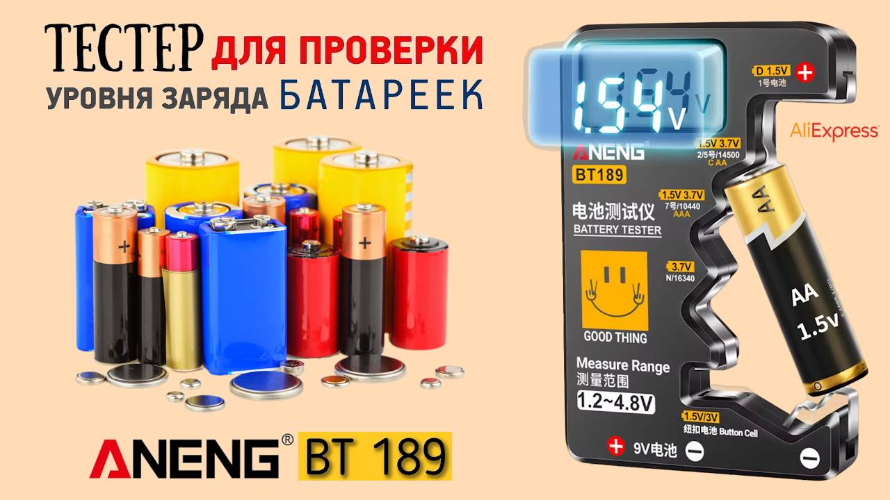 Тестер для проверки уровня заряда батареек Aneng BT-189 🔋