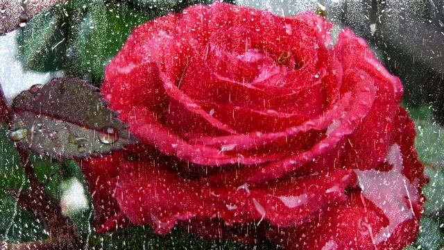 Футаж. Цветы под дождём 3