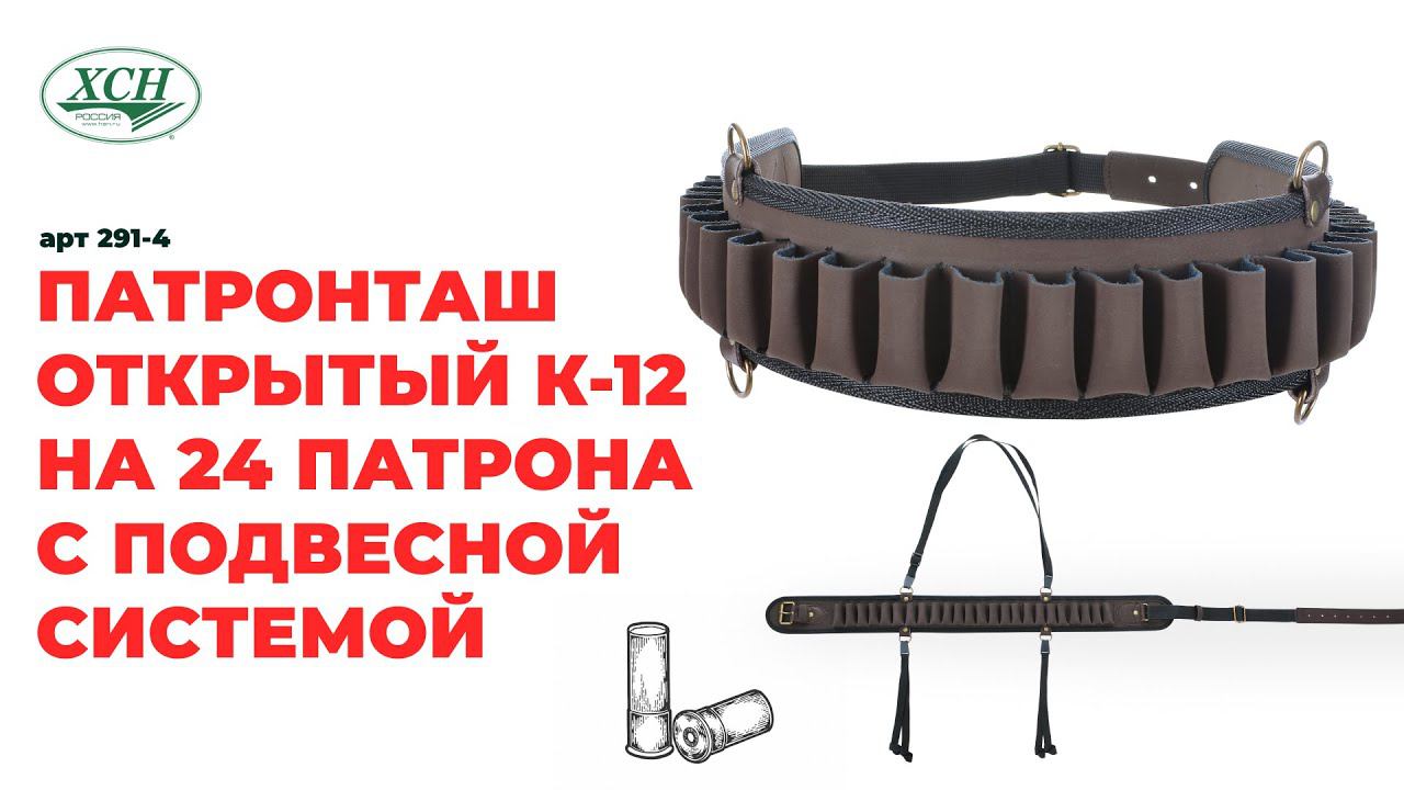 арт 291-4. Патронташ открытый К-12 на 24 патрона с подвесной системой. Производства ХСН