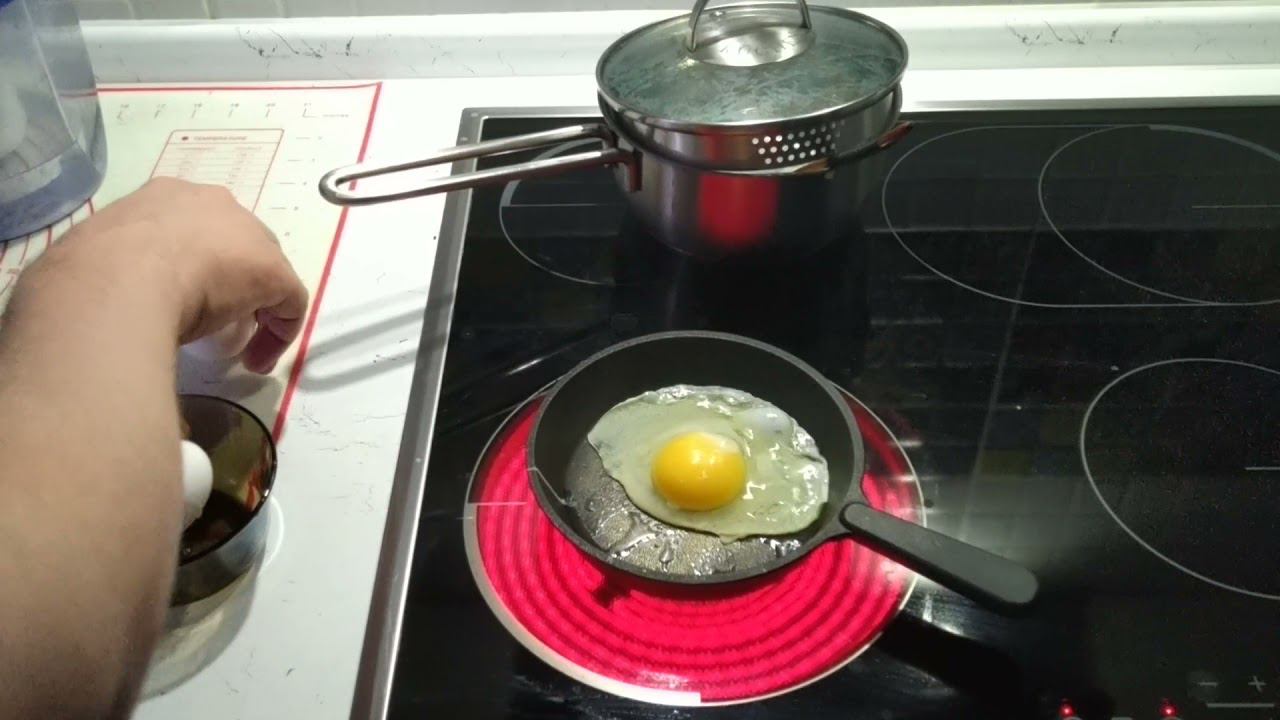 правильная жарка куриных яиц чугунная сковорода