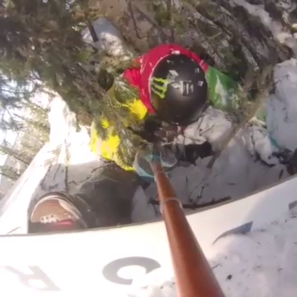 Парень снимал себя во время спуска на доске, когда влетел в дерево и застрял там. #дерево #спуск #сноуборд