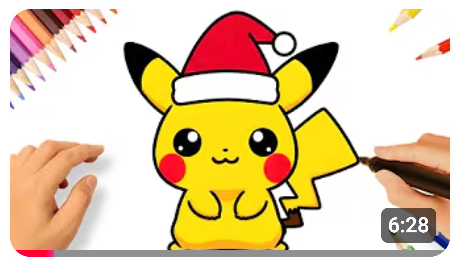 КАК НАРИСОВАТЬ ОЧЕНЬ ПРОСТОГО ПО КАВАЙИ ПИКАЧУ В НОВОГОДНЕЙ ШАПОЧКЕ