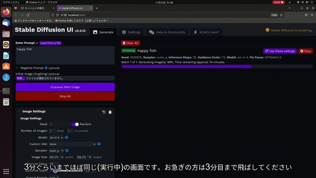 その時の様子です。 [実行ソフト] Stable Diffusion UI https://github.com/cmdr2/stable-diffusion-ui/ [BGM] フリーBGM・音楽素材MusMus https://musmus.main.jp 使用したパソコンのスペックは、以下のブログをどうぞ https://www.limemo.net/blog/?p=40147 #ai #stablediffusion #ubuntu