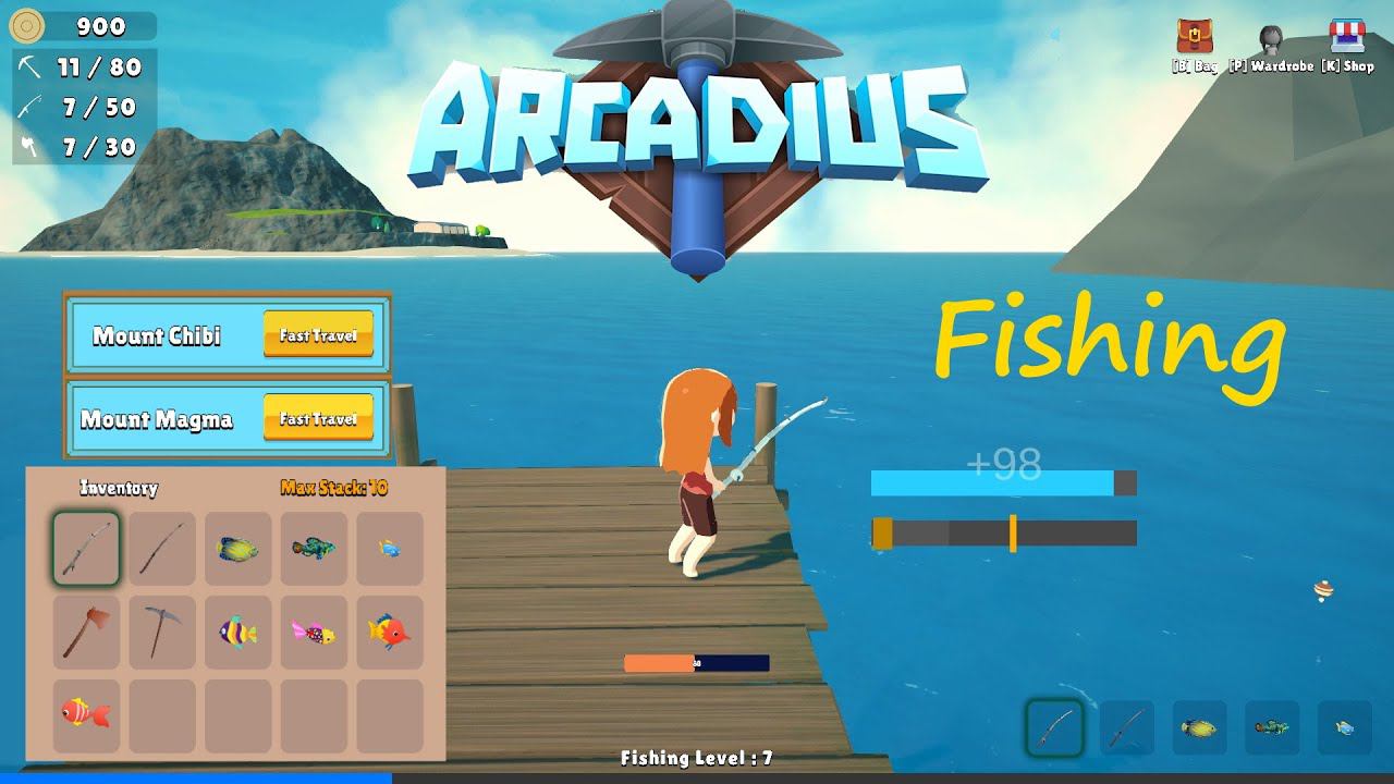 Быстрый заработок денег на рыбалке 2 островах: Mount Chibi, Mount Magma. Steam game: https://store.steampowered.com/app/1105130/Arcadius/