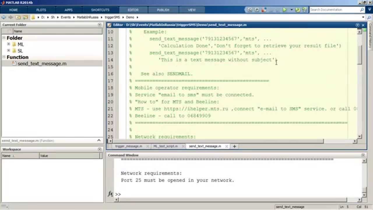 Как послать СМС из MATLAB?