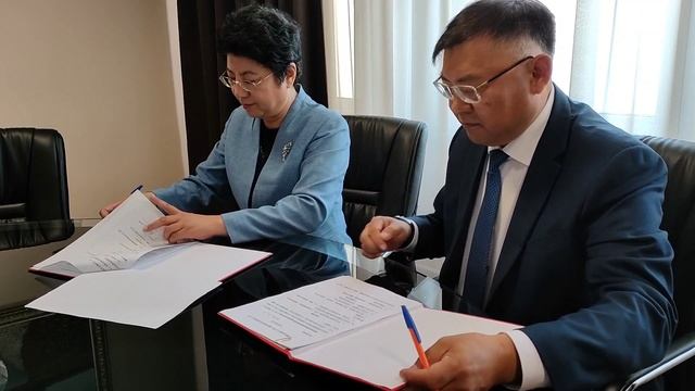 Подписание обновленного соглашения о сотрудничестве между секретарём партийного комитета Чанчуньского политехнического университета (Китай) Ян Юйсинь и ректором Бурятского государственного университета имени Доржи Банзарова Алдаром Валерьевичем Дамдиновым.